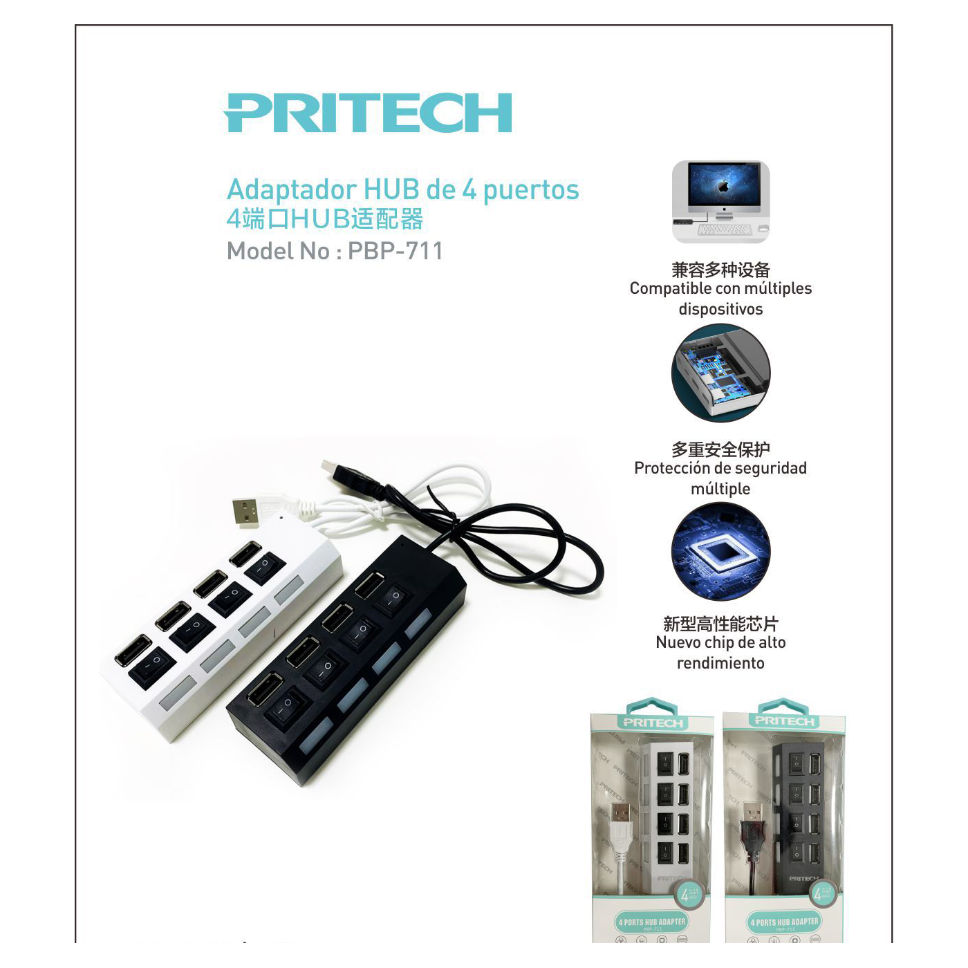 ADAPTADOR HUB 4 PUERTOS PBP-711 PRITECH