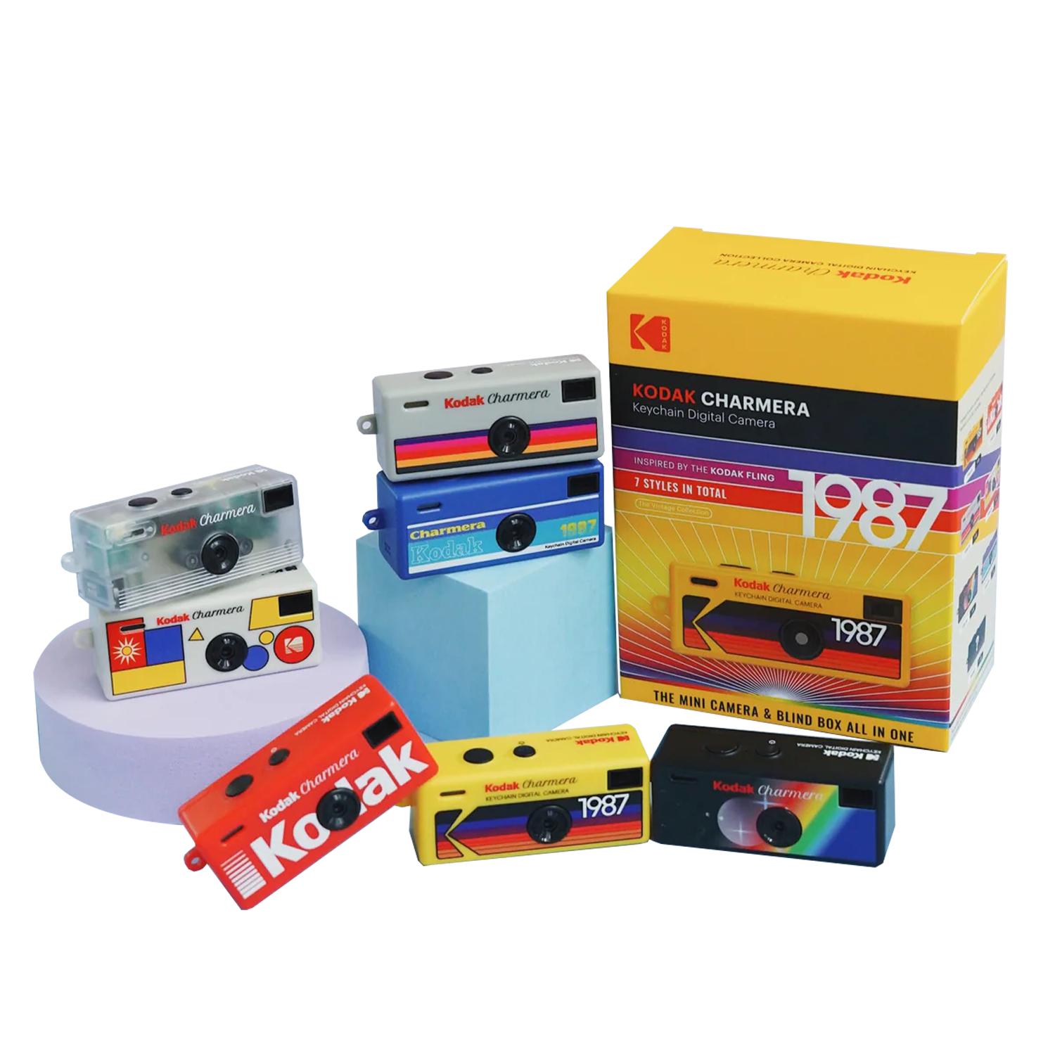 Cada cámara viene en una caja sorpresa, aportando un toque de emoción y coleccionismo. Hay siete diseños vintage distintos —incluida una versión secreta—, por lo que cada apertura de caja se convierte en una experiencia llena de misterio.