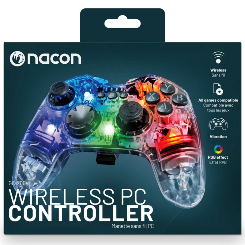 El mando inalámbrico Nacon PCGC-200WLRGB es un controlador diseñado para PC, compatible con sistemas operativos Windows. Ofrece una experiencia de juego cómoda y sin cables, ideal para jugadores exigentes. Su diseño ergonómico se ajusta a todas las tallas de manos, proporcionando un agarre suave y cómodo durante largas sesiones de juego.