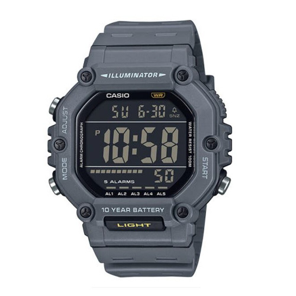 Reloj Casio Hombre AE-1600H-8BV Sport Gris. Caja de resina negra de 54.1 × 49.7 × 15.9 mm. Bisel Gris. Correa de silicona negra. Cierre de hebilla. Esfera negra. Multifunción, calendario, alarma, cronómetro, función de ahorro, hora mundial, iluminación. Cristal mineral. Movimiento quartz. Sumergible 100m