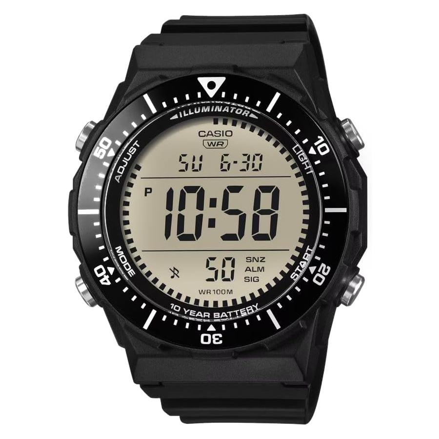 Reloj Casio Hombre AE-1700H-1AV Sport Negro Digital. Caja de resina de 47,3mm de diámetro. Bisel negro bicolor blanco. Correa de resina. Cierre hebilla. Esfera negra. Multifunción, calendario, funciones digitales. Cristal resina de vidrio. Movimiento quartz. Sumergible 100m. Peso 60gr