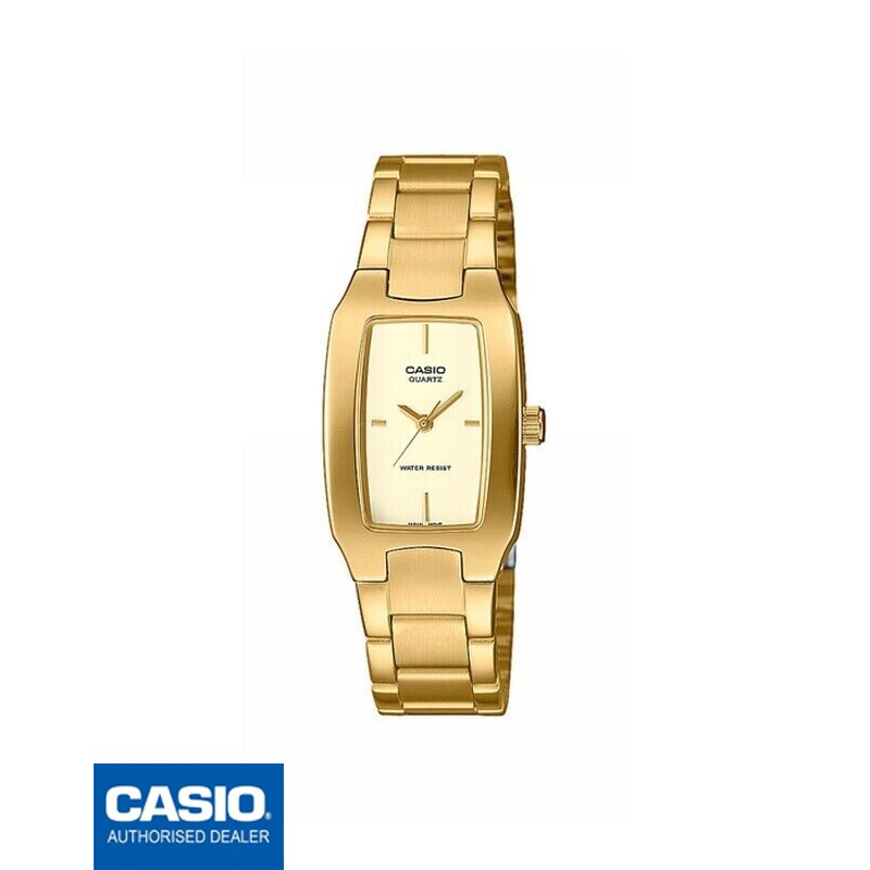 Reloj Casio Mujer LTP-1165PN-9CEF Dorado. Caja de acero IP dorado rectangular de 32,6x21x8,1mm. Brazalete de acero IP dorado. Cierre desplegable. Esfera dorada. Cristal mineral. Movimiento quartz. Sumergible 30m, Ref LTP-1165PN-9CEF