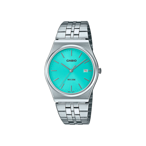 Un combo ganador de buena apariencia clásica y diseño vanguardista, este reloj Casio Classic cumple todos los requisitos. No hay problema si quieres dirigirte a esta playa ya que este reloj original es resistente al agua hasta 50 metros. El potente movimiento del cuarzo garantiza un cronometraje fiable, mientras que el vidrio acrílico protege la esfera de rayones. También hay una práctica ventana de día/fecha a las 3 en punto. La delgada caja de acero inoxidable y la pulsera con una esfera atrevida le dan a este reloj Casio Classic una capa adicional de elegancia y apariencia premium. Un reloj de gran valor que se ve bien y funciona aún mejor.