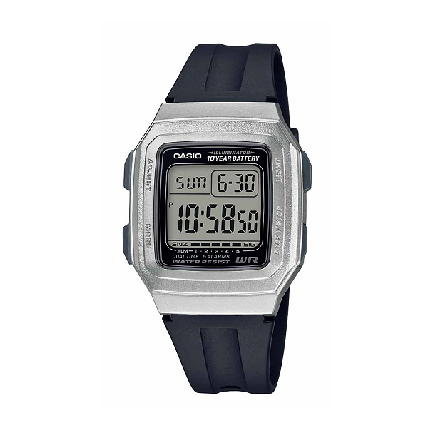 El Reloj Casio Timeless F-201WAM-5AV Unisex combina un diseño vintage con tecnología moderna. Su caja y correa de resina en tonos negro y plateado aportan un toque sofisticado y atemporal. Este reloj es una elección perfecta para quienes buscan estilo y funcionalidad en su accesorio diario.