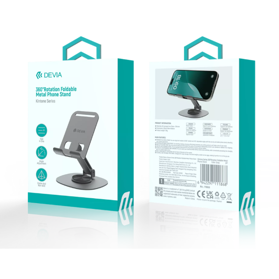 Presentamos el Devia 360 Degrees Desktop Smartphone Plegable Metal Stand en elegante negro. Este soporte versátil es compatible con teléfonos celulares que van desde 4,7 pulgadas de tamaño de pantalla. Ya sea que tenga un smartphone pequeño o uno más grande, este soporte proporciona una plataforma segura y estable para su dispositivo.