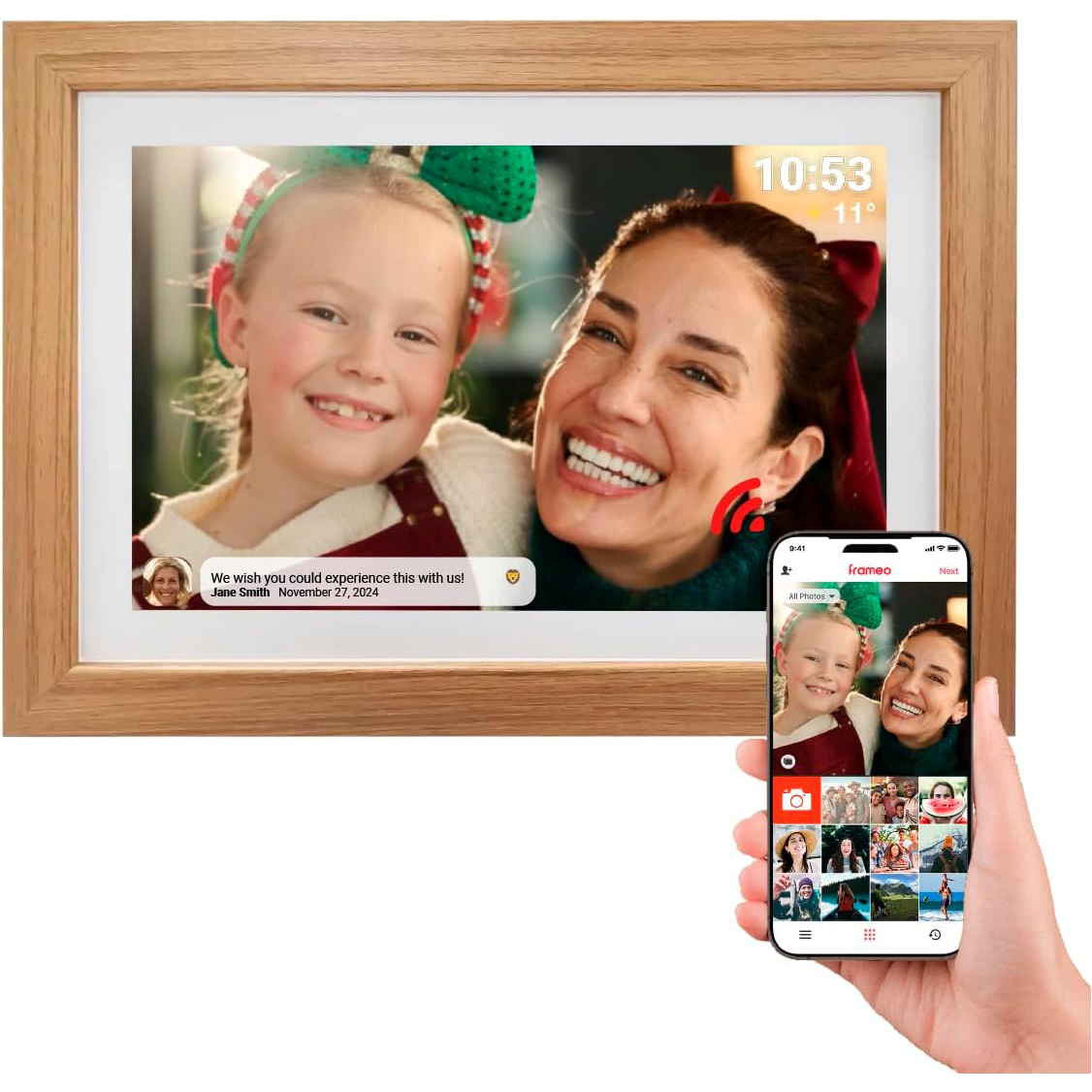 ¿Para qué sirve un marco digital como este? Es la solución ideal para mostrar y actualizar colecciones fotográficas de manera inalámbrica y sin esfuerzo. ¿Cómo se usa? Solo necesitas conectarlo al Wi-Fi, vincular la app Frameo y empezar a enviar imágenes. Disfruta de la tranquilidad de un producto robusto y fácil de manejar incluso para los usuarios más experimentados. Da el salto a la fotografía digital decorativa: sorprende a tus visitas o haz branding corporativo efectivo. ¡Hazlo tuyo ahora y eleva tu espacio al siguiente nivel!