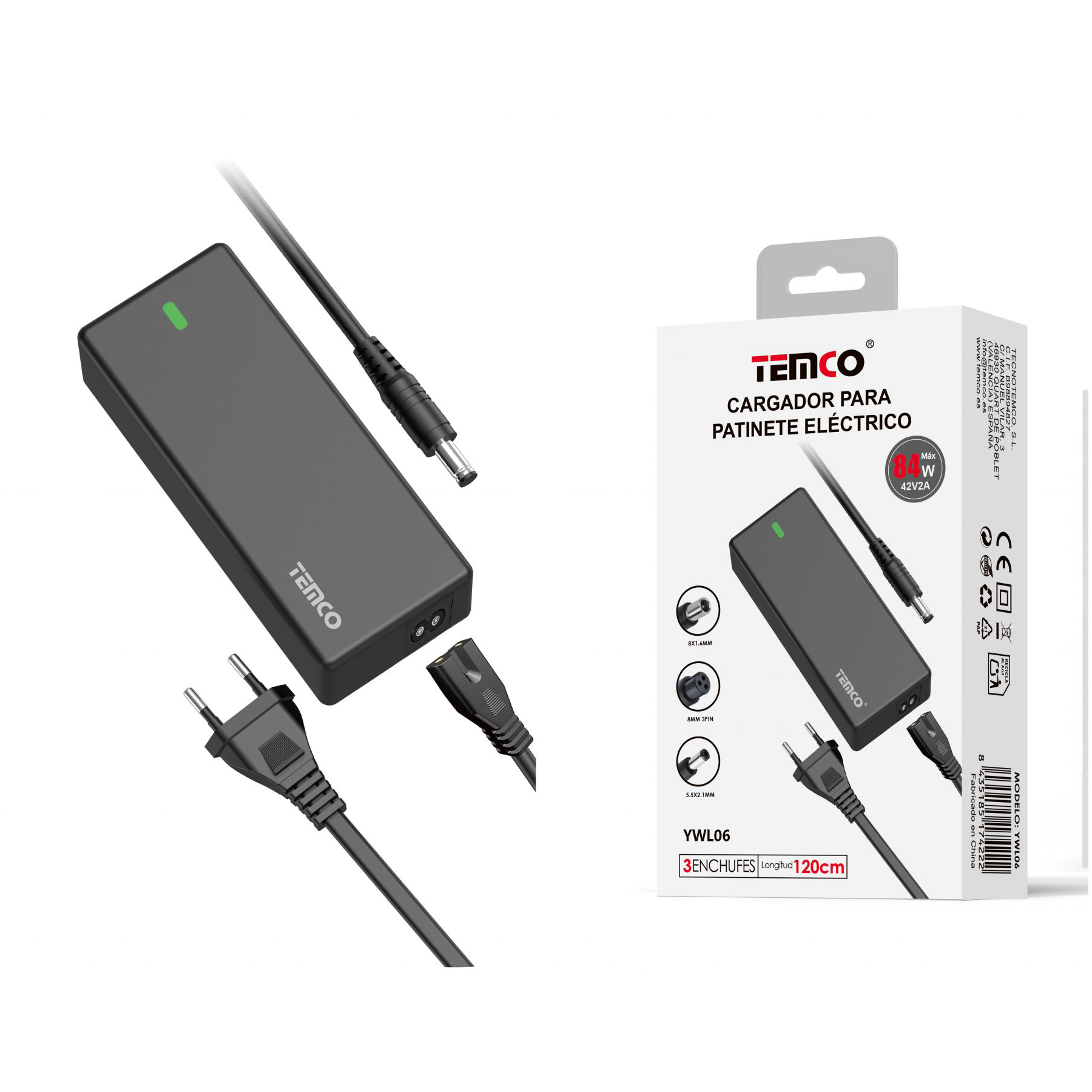 Cargador Patinete Universal 84W 42V2A 3 Enchufes 120cm